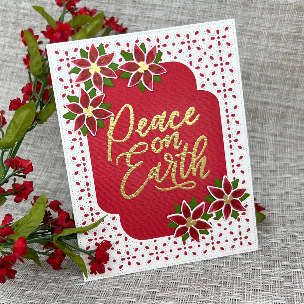 Today I am sharing a Christmas card I created using a few of my favorite techniques – die cutting, stamping, and heat embossing.